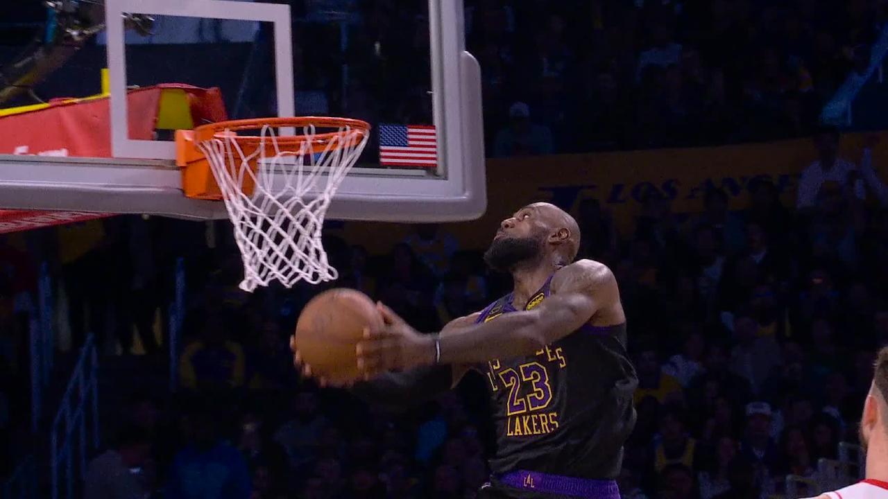 Watch Lakers’ LeBron James blast past Rockets’ Kevin Durant for ageless slam dunk